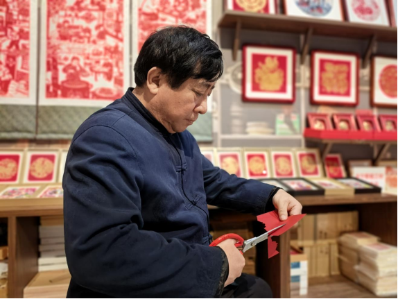 新華網北京2月25日電(記者 唐斕)丙午馬年新春,中國工藝美術館里年味兒十足,豐寧滿族剪紙非遺工坊前人頭攢動。