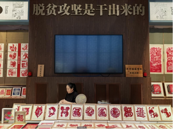這是中國工藝美術館里的豐寧滿族剪紙非遺工坊。新華網記者 唐斕 攝