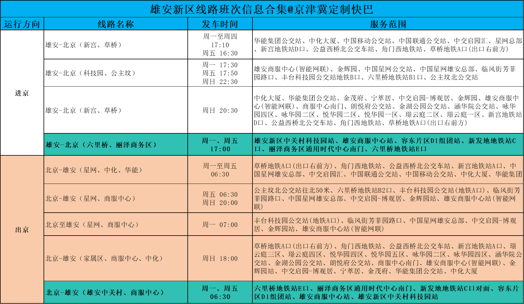 △北京?雄安新區(qū)線路班次合集
