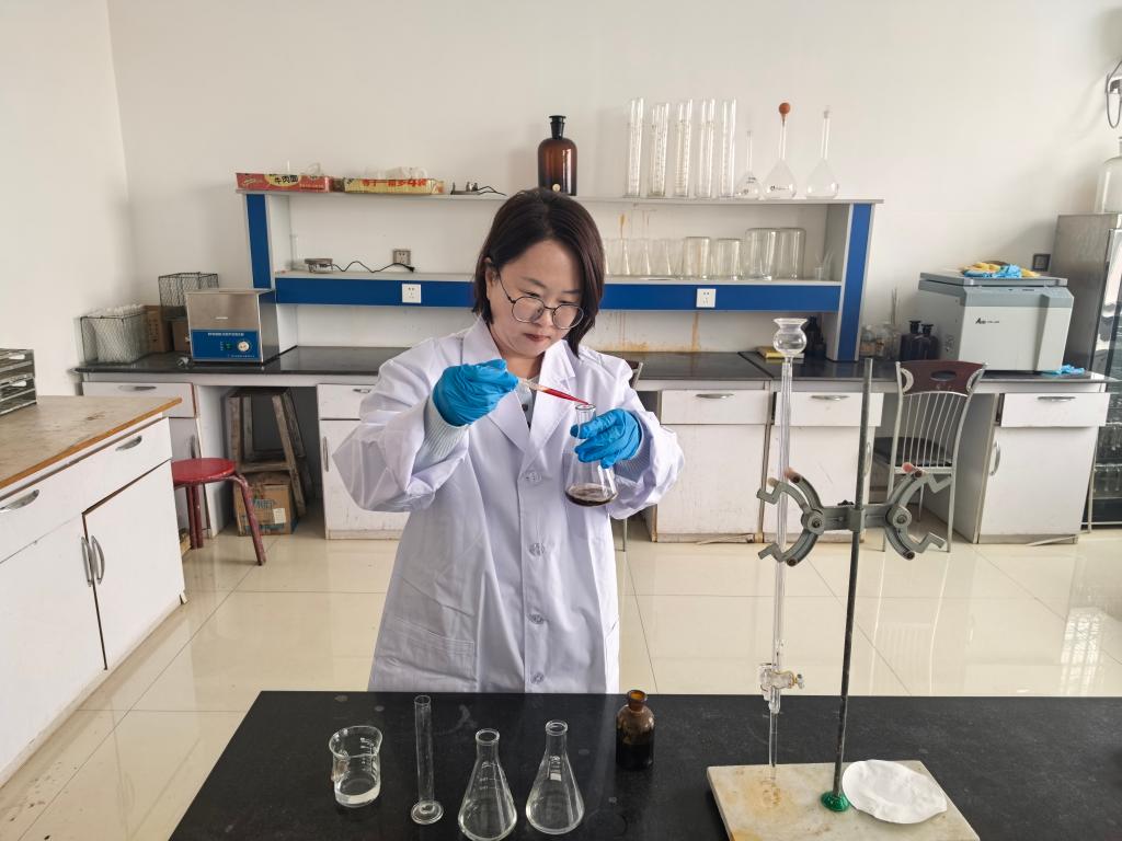 內(nèi)蒙古興安農(nóng)墾集團(tuán)有限責(zé)任公司測土配方辦公室技術(shù)人員正在進(jìn)行化驗(yàn)。(王萍 攝)