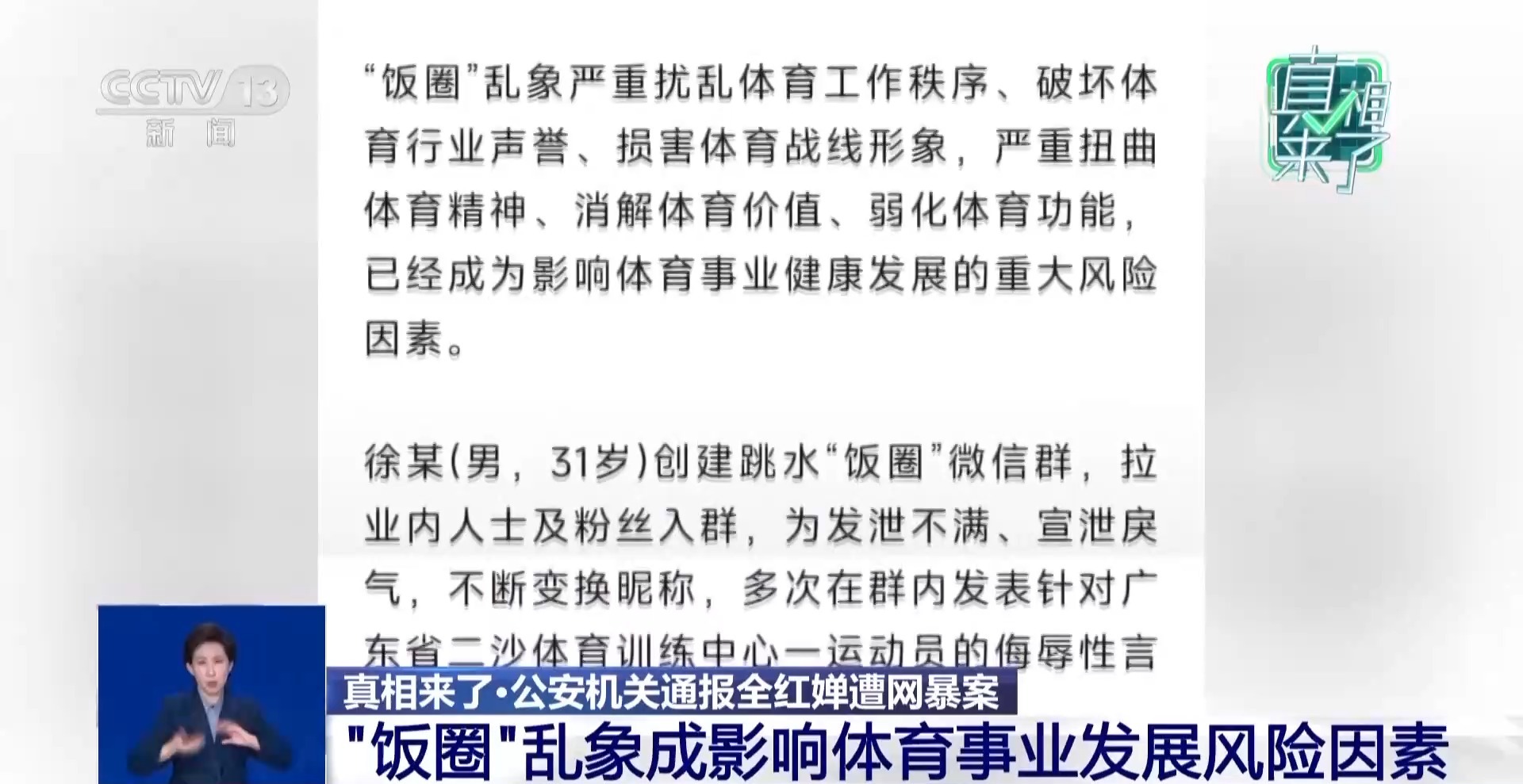 4月10日晚,公安部網(wǎng)安局就奧運冠軍全紅嬋遭網(wǎng)絡(luò)暴力案發(fā)布通報,涉案人員徐某因在“飯圈”微信群惡意拉踩、發(fā)表侮辱言論,被公安機關(guān)依法行政拘留并處罰款。
