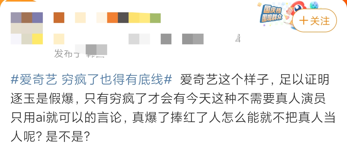 或許出發(fā)點(diǎn)是善意的,但是網(wǎng)友和藝人并不買(mǎi)賬。很快,#愛(ài)奇藝 底線# #愛(ài)奇藝 瘋了#等話題詞就登上熱搜。