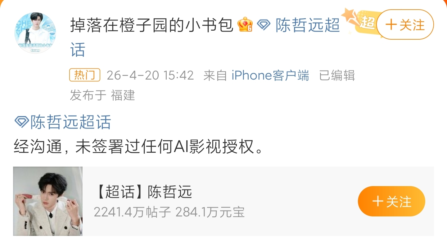 先有張若昀、陳哲遠(yuǎn)、于和偉、王楚然等明星方面紛紛發(fā)文否認(rèn),強(qiáng)調(diào)“未簽過(guò)任何AI相關(guān)授權(quán)”。后有網(wǎng)友強(qiáng)烈抵制,“所以演員休息了,給觀眾看AI?”“我為什么要開(kāi)會(huì)員看假人?”