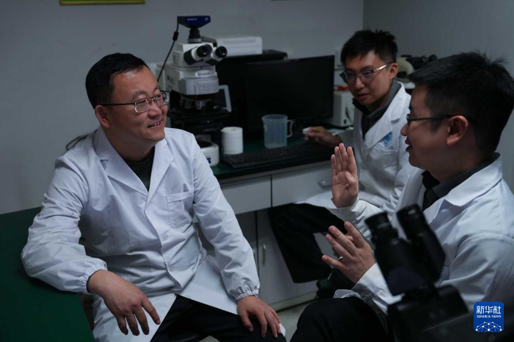 4月3日,課題組成員討論問題。新華社發(fā)(周久淞攝)