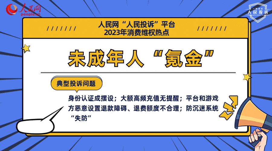 典型投訴問題:身份認證成擺設(shè);大額高頻充值無提醒;平臺和游戲方惡意設(shè)置退款障礙、退費額度不合理;防沉迷系統(tǒng)“失防”