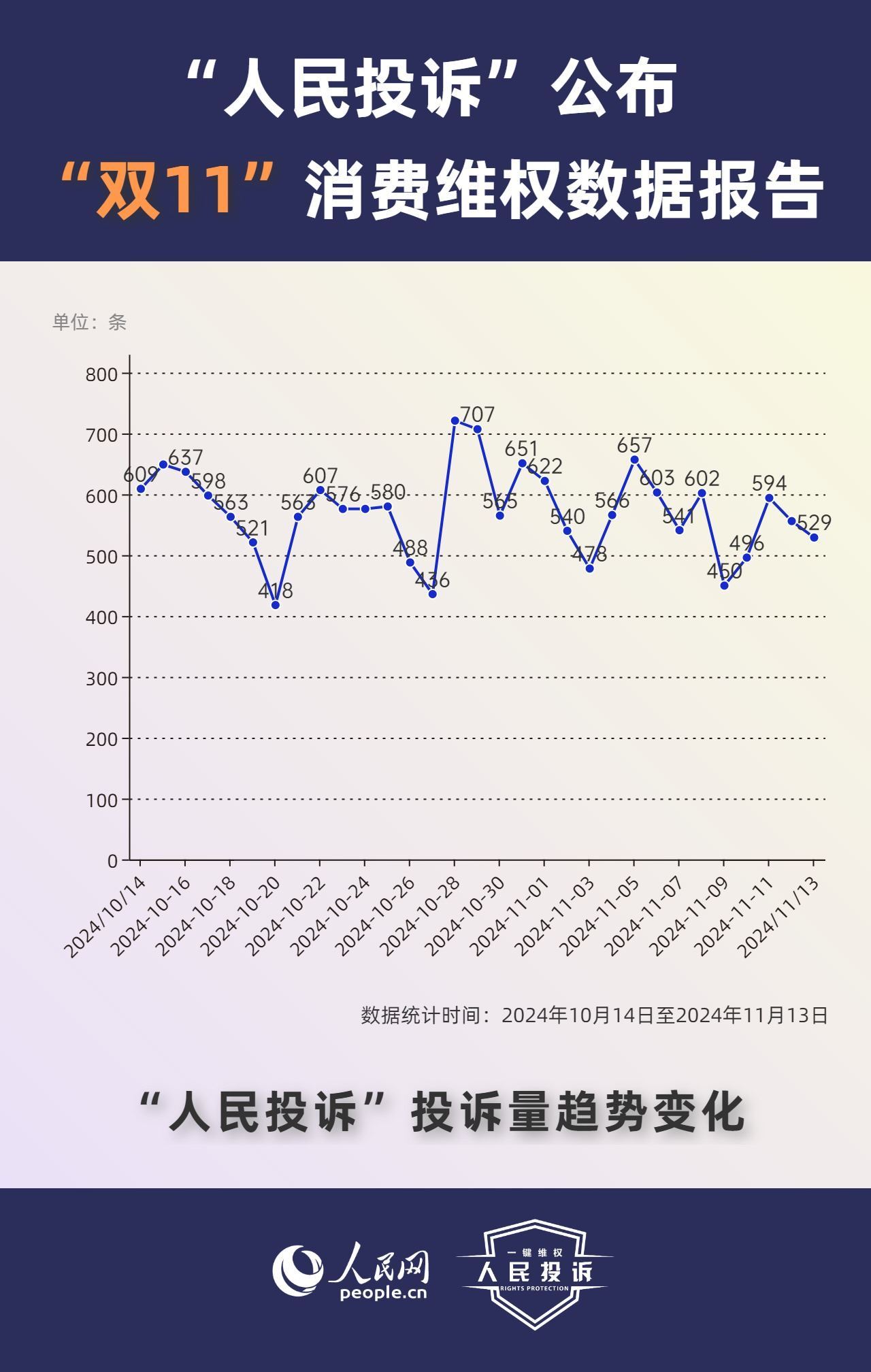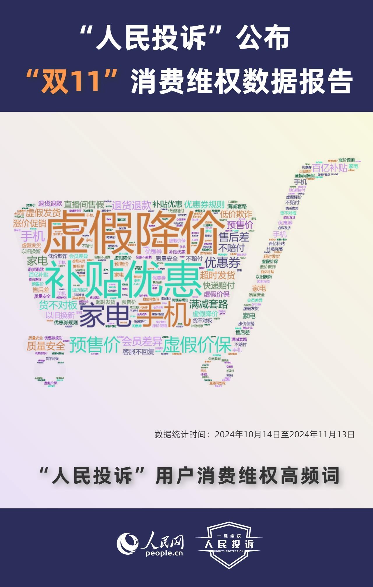 那么,今年你的“雙11”購物還遇到了哪些“套路”?據(jù)人民網(wǎng)“人民投訴”平臺(tái)統(tǒng)計(jì),“雙11”期間平臺(tái)共收到17699條(數(shù)據(jù)統(tǒng)計(jì)從2024年10月14日-11月13日)投訴信息。其中,手機(jī)、家電、智能產(chǎn)品、美妝服飾等消費(fèi)領(lǐng)域維權(quán)量大;平臺(tái)“國補(bǔ)”“以舊換新”等優(yōu)惠規(guī)則不透明,保價(jià)服務(wù)藏“貓膩”,直播間虛假“破價(jià)”,“百億補(bǔ)貼”商品貨不對板,“高價(jià)預(yù)售”欺詐等問題反映突出。