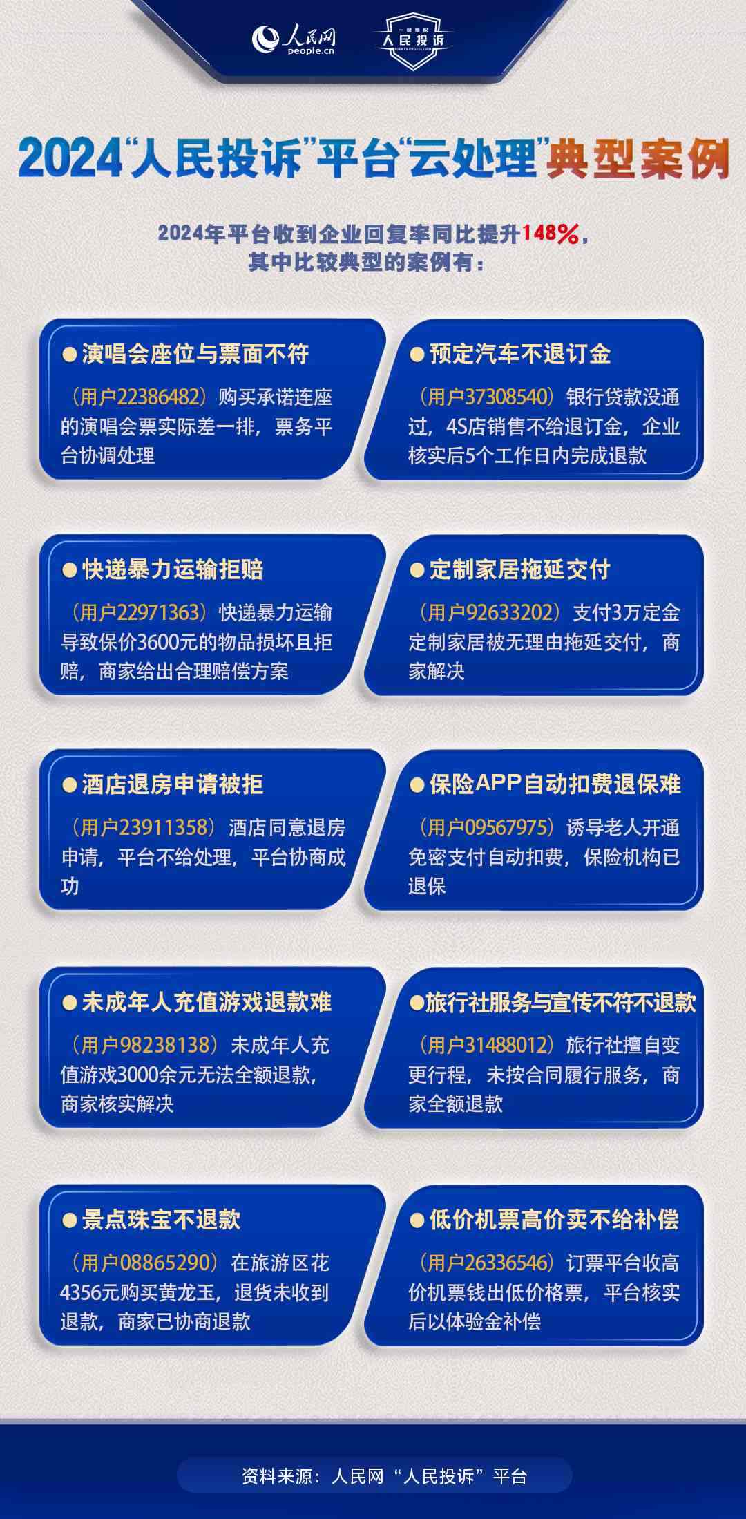 2024年,旅游消費(fèi)持續(xù)火爆,以舊換新“換”出消費(fèi)新活力,直播電商“品質(zhì)化”轉(zhuǎn)型,新能源汽車購銷兩旺……在消費(fèi)市場熱力持續(xù)提升的背景下,旅游產(chǎn)品退訂難,電商促銷虛假價(jià)保,直播間營銷違規(guī),車險(xiǎn)車貸服務(wù)欺詐,AI培訓(xùn)貨不對板等消費(fèi)侵權(quán)問題引發(fā)廣泛關(guān)注。“人民投訴”發(fā)布年報(bào)帶您回顧這一年來,平臺(tái)消費(fèi)維權(quán)熱點(diǎn)和入駐企業(yè)積極處理糾紛的舉措。