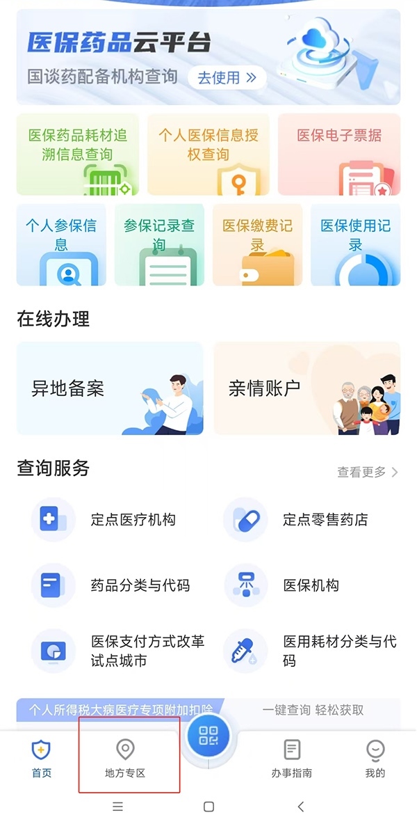 第一步:以北京為例,打開“國(guó)家醫(yī)保服務(wù)平臺(tái)”App,點(diǎn)擊進(jìn)入下方“地方專區(qū)”,選擇“北京市”。