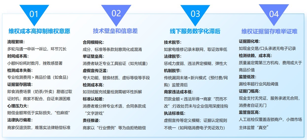 通過對消費(fèi)維權(quán)新老問題的梳理和分析,“人民投訴”認(rèn)為,傳統(tǒng)問題多因信息不對稱和監(jiān)管漏洞,而新難題則疊加了技術(shù)復(fù)雜性(如算法操控)和新業(yè)態(tài)模式(如直播、盲盒),維權(quán)難度升級。