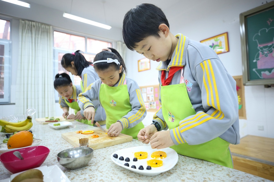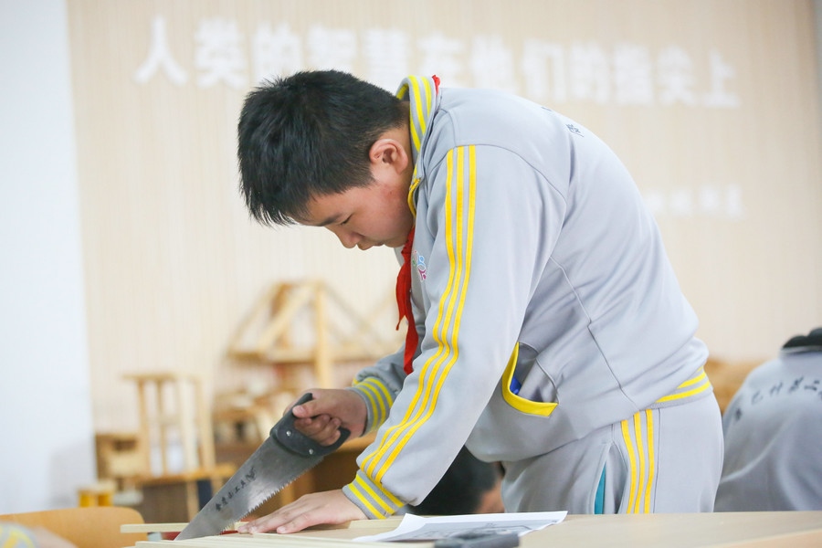 “今日課程學(xué)習(xí)的是水果拼盤和可樂雞翅。”跟隨勺鏟翻動,添上各種調(diào)料,一個個身著圍裙的學(xué)生們正在老師的指導(dǎo)下忙的不亦樂乎。從擇菜、烹飪到清洗廚具,一個個學(xué)生儼然已經(jīng)成為“小廚師”。從三年級開始,學(xué)校還開展了陶藝、木工、科技制作等活動,找準(zhǔn)學(xué)生的興趣點,學(xué)校有趣的勞動技能活動吸引了學(xué)生的眼球。