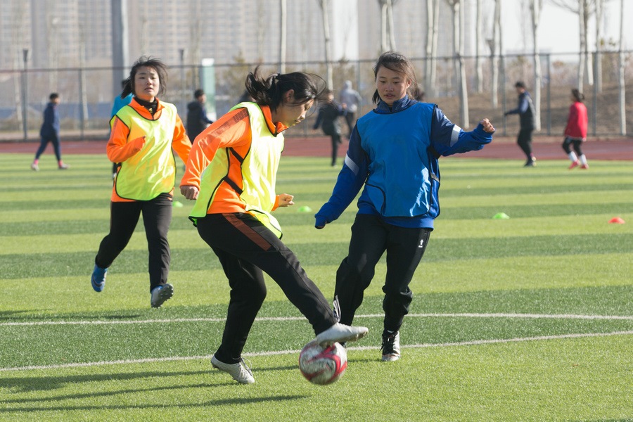 內(nèi)蒙古中學(xué)生女子足球隊(duì)員選拔現(xiàn)場