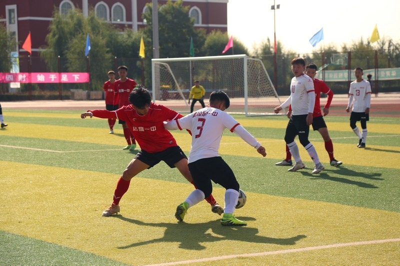 比賽場中,2021年內(nèi)蒙古自治區(qū)校園足球高中甲級聯(lián)賽揭幕戰(zhàn),在鄂爾多斯市達(dá)拉特旗第一中學(xué)與呼倫貝爾市海拉爾第一中學(xué)間鳴哨打響;乙級聯(lián)賽首戰(zhàn)在阿拉善蒙古族完全中學(xué)和準(zhǔn)格爾旗世紀(jì)中學(xué)間激烈開踢。甲乙級聯(lián)賽對陣雙方的球員通過你來我往的激烈拼搶、賽場角逐,將青春的汗水盡情揮灑,用拼搏向上的體育精神點(diǎn)燃生命之光!最終,鄂爾多斯市達(dá)拉特旗第一中學(xué)以2:1的比分,取得甲級聯(lián)賽揭幕戰(zhàn)勝利。準(zhǔn)格爾旗世紀(jì)中學(xué)則在先丟1球的情況下奮起直追,連入4球,將比分定格在4:1,成功贏得乙級聯(lián)賽首場比賽。