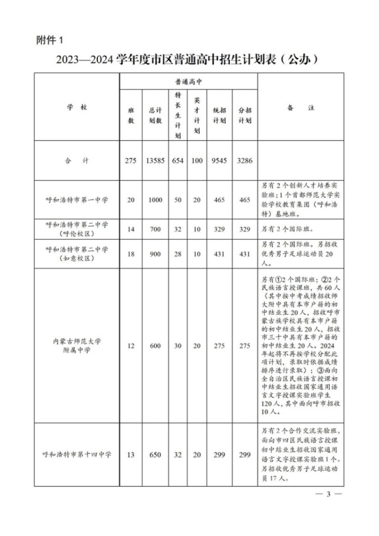 13日,呼和浩特市教育局發(fā)布2023-2024學年度市區(qū)高中招生計劃的通知,同時明確有關要求。