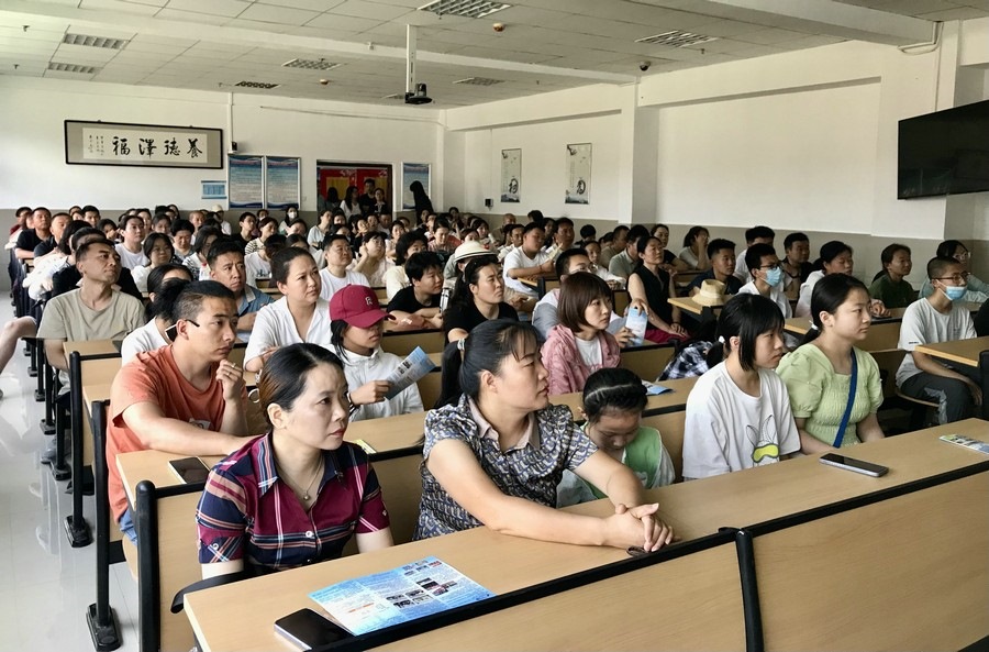 上午8:00,家長和同學(xué)們陸續(xù)走進學(xué)校。截至9:00,學(xué)校3個報告廳、教學(xué)樓二樓大廳、家長接待室、校南門家長咨詢點,共接待家長超1500人次。