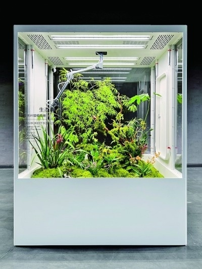 展廳一側(cè),三個立方體環(huán)境模擬艙并排放置,分別在近7立方米的空間內(nèi)模擬了雨林、海島、沙漠三種生態(tài)環(huán)境,引來許多觀眾圍觀?!霸诟邩橇至⒌亩际?,很多人都向往擁有一方屬于自己的自然天地。為人們在室內(nèi)打造一片‘原始森林’便成了我們的使命。”品牌創(chuàng)始人李軍介紹,設(shè)計過程中,團隊遇到的一大的難點就是在保證室內(nèi)環(huán)境舒適度的同時,讓各類植物健康生長?!巴ㄟ^設(shè)計師的努力,我們首次將人造太陽光源、溫濕度控制、空氣流通、智能微噴等系統(tǒng)整合于室內(nèi)種植模擬環(huán)境中,實現(xiàn)了室內(nèi)種植智能化、自動化、現(xiàn)代化。”李軍表示,做設(shè)計亦要遵循自然法則,“人與自然和諧共生”是團隊始終不變的設(shè)計宗旨。