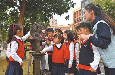 2022年3月,九龍坡區(qū)教委印發(fā)《關(guān)于推進(jìn)中小學(xué)集團(tuán)化辦學(xué)的意見》,謝家灣金茂小學(xué)成為謝家灣教育集團(tuán)一體化辦學(xué)成員校。謝家灣金茂小學(xué)的前身是重慶建設(shè)工業(yè)(集團(tuán))有限公司子弟學(xué)校,約1/3的教師曾是工廠職工?!盎趯W(xué)校情況,我們強(qiáng)調(diào)培養(yǎng)學(xué)生養(yǎng)成熱愛勞動的習(xí)慣,形成陽光心態(tài)?!敝x家灣金茂小學(xué)黨總支書記楊永財指著校園內(nèi)擺放的老舊機(jī)床說,“重慶建設(shè)工業(yè)(集團(tuán))有限公司發(fā)展歷史厚重,學(xué)校積極挖掘紅色資源,給孩子們講好革命歷史,上好思政課?!?/p>