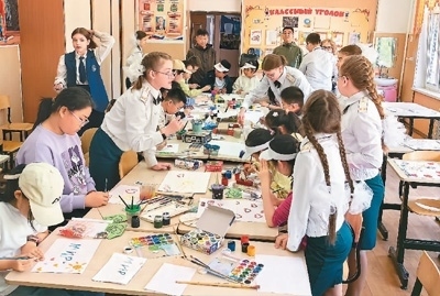 近日,黑龍江省黑河市第六小學(xué)教育集團(tuán)赴俄羅斯布拉戈維申斯克第六學(xué)校開展文化交流。交流期間,中國學(xué)生體驗(yàn)了俄羅斯的課堂文化,雙方增進(jìn)了對彼此文化的了解;操場上,兩國學(xué)生載歌載舞,通過音樂和舞蹈進(jìn)一步加深了友誼。圖為中俄兩國學(xué)生一起繪畫。
