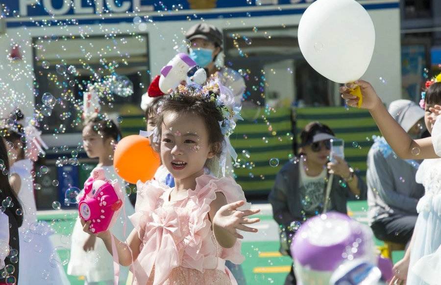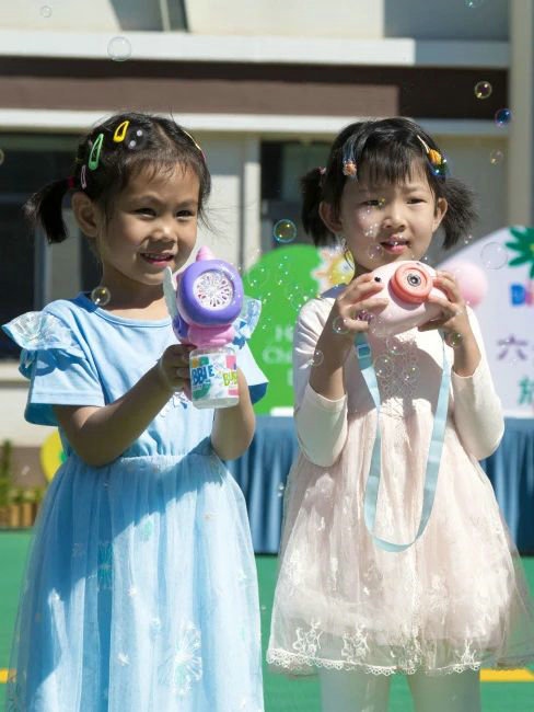 小朋友沉浸在泡泡的童話(huà)世界里