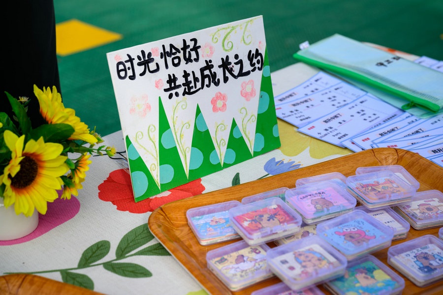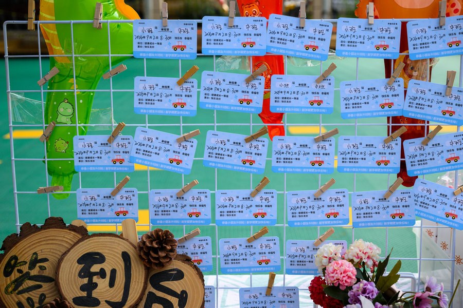 小朋友在家長的陪伴下,興高采烈走進校園內(nèi)各個打卡地,打卡蓋章、拍照留念。