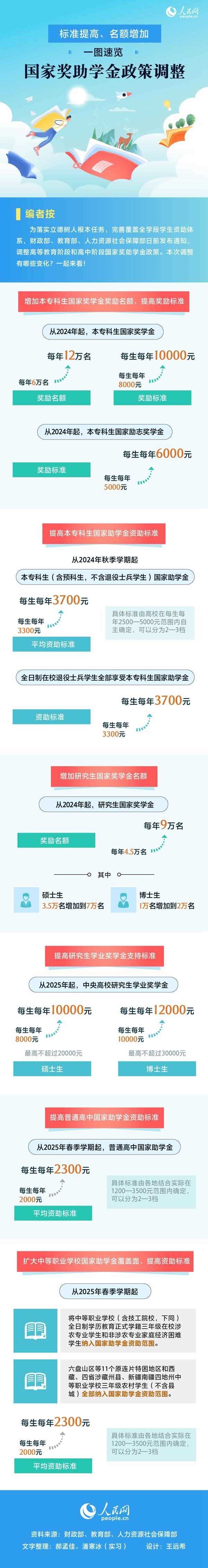 標(biāo)準(zhǔn)提高、名額增加!一圖速覽國家獎助學(xué)金政策調(diào)整