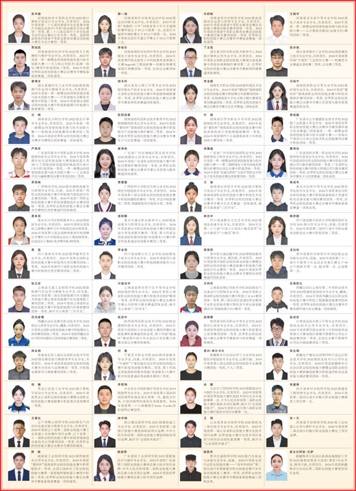 經(jīng)過嚴格選拔和評審,全國約2萬名中職學(xué)生榮獲2023—2024學(xué)年度中等職業(yè)教育國家獎學(xué)金。以下100名學(xué)生是中等職業(yè)教育國家獎學(xué)金獲獎學(xué)生中的優(yōu)秀代表。希望全國中職學(xué)生以他們?yōu)榘駱?,愿學(xué)技能、學(xué)好技能,努力將自己鍛造成為新時代的高素質(zhì)技術(shù)技能人才、能工巧匠、大國工匠,在推進強國建設(shè)、民族復(fù)興偉業(yè)中展現(xiàn)青春作為、彰顯青春風(fēng)采、貢獻青春力量,奮力書寫為中國式現(xiàn)代化挺膺擔(dān)當(dāng)?shù)那啻浩隆?/p>