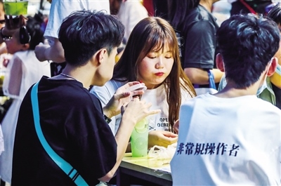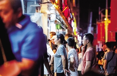 在中山西路,耀眼的霓虹燈點亮了城市最繁華的商業(yè)區(qū),人們摩肩接踵,這里聚集了更多的年輕人,他們一手緊握手機,一手拎著美食,眼睛還不停地尋找更新奇的東西?!皼]想到這么多人,感覺比過年的時候人還多?!薄拔覀兪窃诰W上看到這里開放夜市,所以約幾個朋友一起過來逛街的,沒想到這么熱鬧?!辈稍L中,無論是商戶還是市民,都為眼前繁華、熱鬧的場景欣喜。