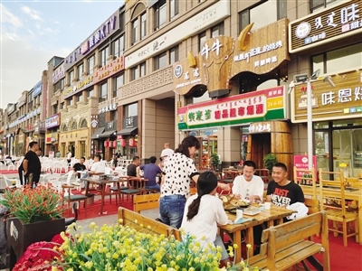 與大召濃厚的本土文化特色相比,惱包村是另外一種具有江南風格的消遣之地,人們流連于它的小橋流水,在這里不僅大人們可以消遣,孩子們也有游玩的地方。旋轉木馬、跳跳床等,給孩子們增添了更多的歡樂。而在萬達花樣年華步行街,因為開放夜市,沿街商戶的營業(yè)時間延長到了晚上22時,這對于經營水果、蔬菜生意的店老板閆先生來說無疑是好消息?!耙故胁砰_了幾天,我們家的營業(yè)額就大幅度提升了,比之前要多出來1000塊錢,因為周邊就是居民小區(qū),大家出來閑逛,看到蔬菜、水果自然而然的就會挑選,我們的生意也就好做了?!遍Z先生說。