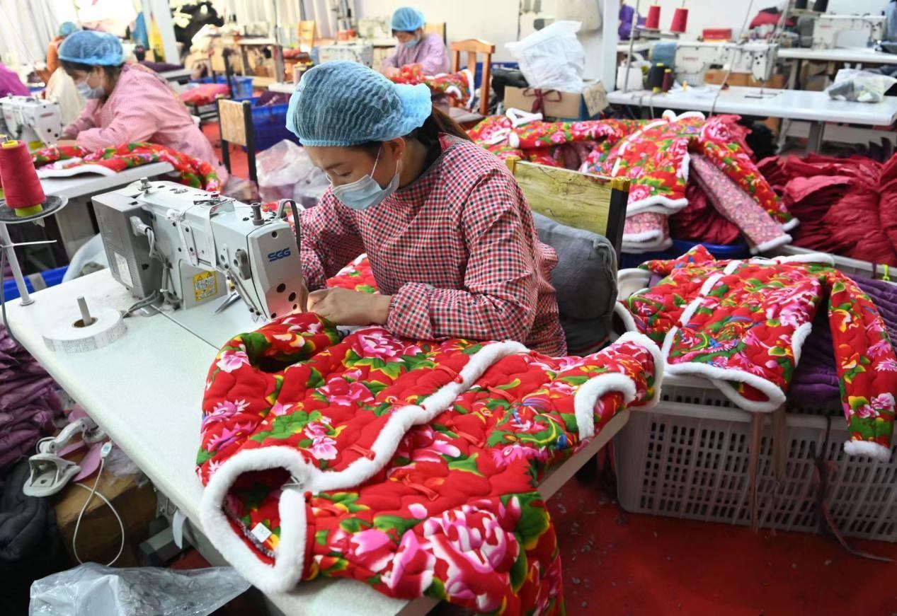 寒冬時節(jié),山東省聊城市東昌府區(qū)侯營鎮(zhèn)的婦女們在加工“網(wǎng)紅小棉襖”忙碌不停??p制出的小棉襖柔軟舒適,大方得體,深受消費者喜愛。產(chǎn)品暢銷全國各地,成為當(dāng)?shù)剞r(nóng)民增收和脫貧致富的特色產(chǎn)業(yè)之一。