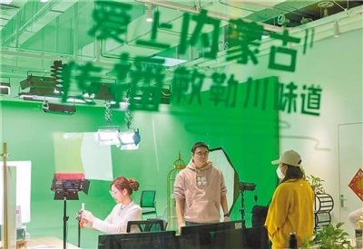 走進(jìn)呼和浩特市金橋電子商務(wù)產(chǎn)業(yè)園二樓的“愛上內(nèi)蒙古正能量網(wǎng)紅孵化基地”,首先映入眼簾的,是擺滿興安盟大米、燕麥米、高原杏仁露等產(chǎn)品的內(nèi)蒙古味道展臺。這里,既是內(nèi)蒙古味道走出內(nèi)蒙古的一個(gè)起點(diǎn),更是像張舟一樣的內(nèi)蒙古“網(wǎng)紅”們夢想開始的地方。