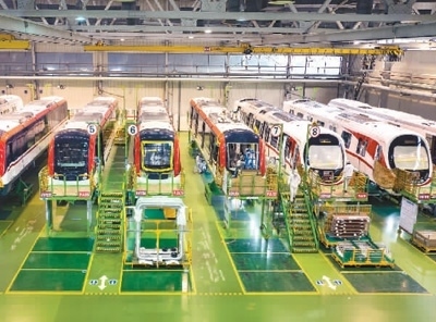 2023年2月14日,湖南省中車(chē)株洲電力機(jī)車(chē)有限公司城軌事業(yè)部總成車(chē)間,技術(shù)人員在加緊組裝城軌車(chē)輛,趕制國(guó)內(nèi)外客戶(hù)訂單。李 健攝(人民圖片)