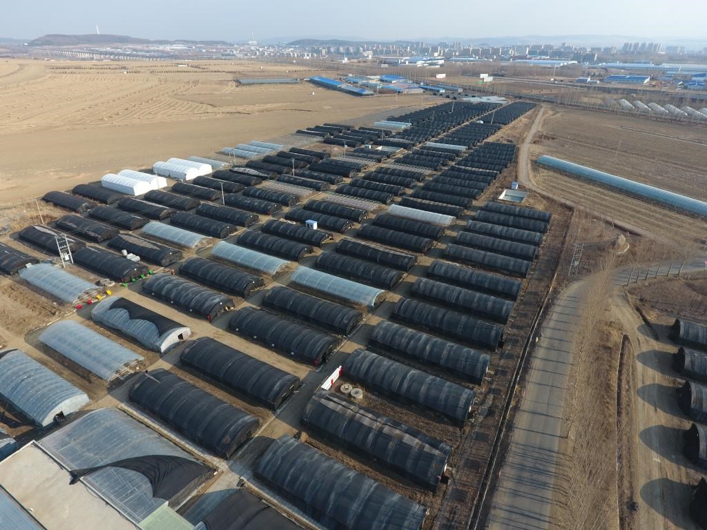 悅來頤和食用菌種植專業(yè)合作社的部分大棚(無(wú)人機(jī)照片)。新華社記者 王松 攝