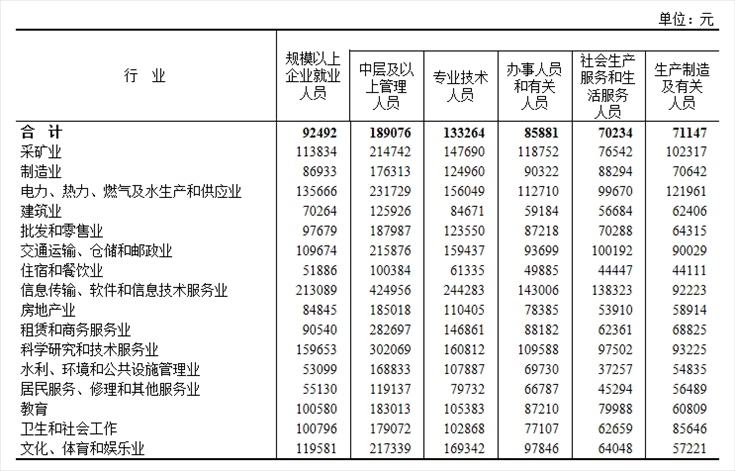 2022年全國城鎮(zhèn)非私營單位就業(yè)人員年平均工資為114029元,比上年增加7192元,名義增長6.7%。扣除價格因素,2022年全國城鎮(zhèn)非私營單位就業(yè)人員年平均工資實際增長4.6%。