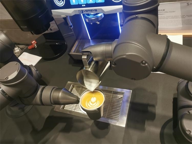 磨粉、過(guò)濾、注水、沖泡、拉花……短短75秒,智能咖啡大師就憑借著兩只靈活又穩(wěn)重的機(jī)械臂,制作出一杯帶拉花圖案的香濃咖啡?!拔覀兊臋C(jī)械臂拉花都是由咖啡大師調(diào)教的,很精準(zhǔn),如果說(shuō)有時(shí)候人可能存在失誤的情況,那么機(jī)器人不會(huì)?!卞鄄┥綎|智能機(jī)器人有限公司調(diào)試工程師崔玉坤告訴記者,這臺(tái)機(jī)器目前可以做出4個(gè)品類6個(gè)花型的拉花效果,后期可以支持在線升級(jí)和擴(kuò)充。