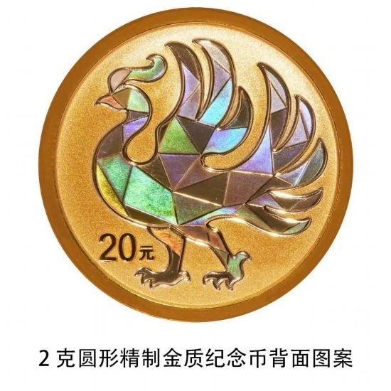 2克圓形金質(zhì)紀念幣背面圖案為裝飾鳳凰造型,并刊面額。
