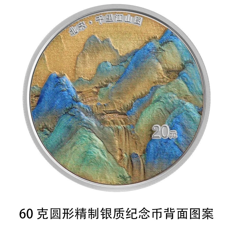 該套金銀紀(jì)念幣背面圖案均為《千里江山圖》局部場(chǎng)景,并刊“北宋·千里江山圖”字樣及面額。
