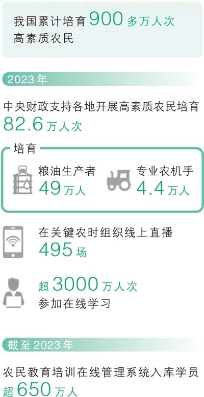 不久前,農(nóng)業(yè)農(nóng)村部辦公廳印發(fā)《關(guān)于做好2024年高素質(zhì)農(nóng)民培育工作的通知》,要求緊緊圍繞農(nóng)業(yè)農(nóng)村高質(zhì)量發(fā)展人才需求,堅(jiān)持需求導(dǎo)向、產(chǎn)業(yè)主線、分層實(shí)施、全程培育,聚焦提升技術(shù)技能水平、提升產(chǎn)業(yè)發(fā)展能力、提升綜合素質(zhì)素養(yǎng),培育糧食安全守護(hù)者、產(chǎn)業(yè)發(fā)展帶頭人和鄉(xiāng)村振興主力軍,為推進(jìn)鄉(xiāng)村全面振興、加快建設(shè)農(nóng)業(yè)強(qiáng)國(guó)提供堅(jiān)實(shí)人才保障。