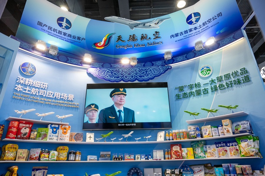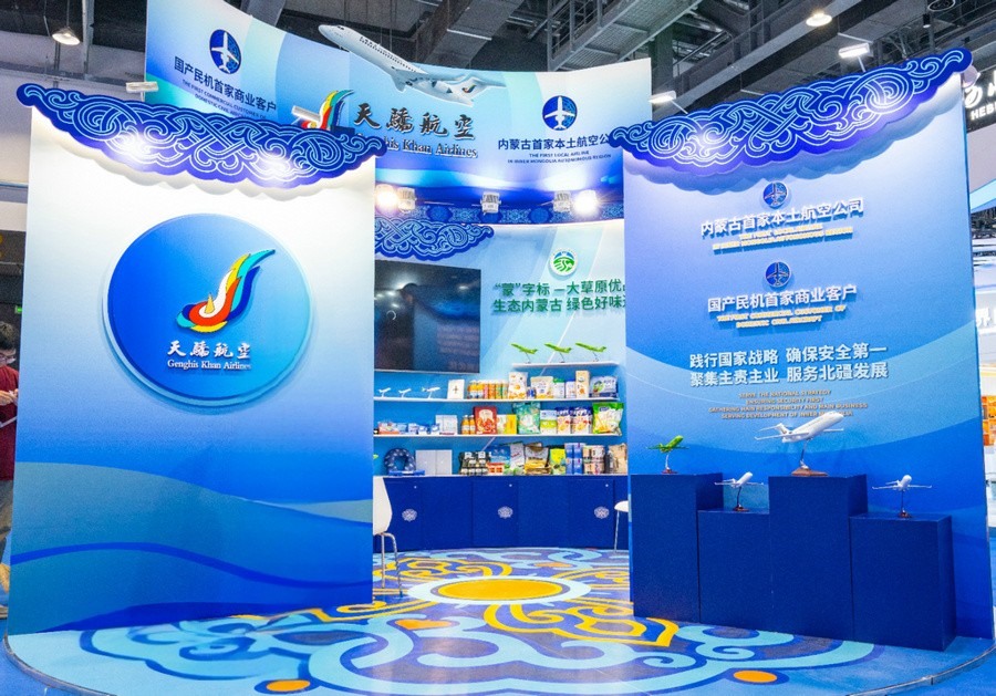本次會展天驕航空以“天驕新風(fēng)貌 聚焦內(nèi)蒙古”為主題,以濃郁的內(nèi)蒙古元素為特色,突出天驕航空作為內(nèi)蒙古自治區(qū)本土航空公司在完善區(qū)內(nèi)航線網(wǎng)絡(luò)、助推民航產(chǎn)業(yè)落地、服務(wù)地方經(jīng)濟發(fā)展等方面做出的努力,以及作為全國首家運營純國產(chǎn)民機機隊的航空運輸企業(yè),在國產(chǎn)民機的商業(yè)運營、品牌推廣等方面進行的探索。