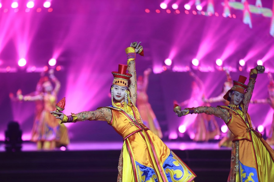 2017年,黃花溝草原旅游區(qū)傾力打造了一臺游牧風情實景演藝《相會敖包》。2020年7月2日,《相會敖包》在黃花溝草原旅游區(qū)窩闊臺大劇院進行了首演。該劇以蒙古族傳統(tǒng)的敖包祭祀儀式和那達慕活動為創(chuàng)作原型,以特色濃郁的蒙古族歌舞器樂為表現手法,藝術地呈現了敖包祭祀的神圣莊嚴和草原兒女對敖包的深厚情感以及那達慕大會的歡騰景象,表達了蒙古族群眾崇尚自然的理念,讓觀眾進一步領略敖包文化的豐富內容和深邃內涵。(完)