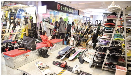 2月14日,在陜西太白縣鰲山滑雪場(chǎng)內(nèi),俱樂(lè)部會(huì)員在挑選滑雪裝備。新華社記者 邵瑞 攝