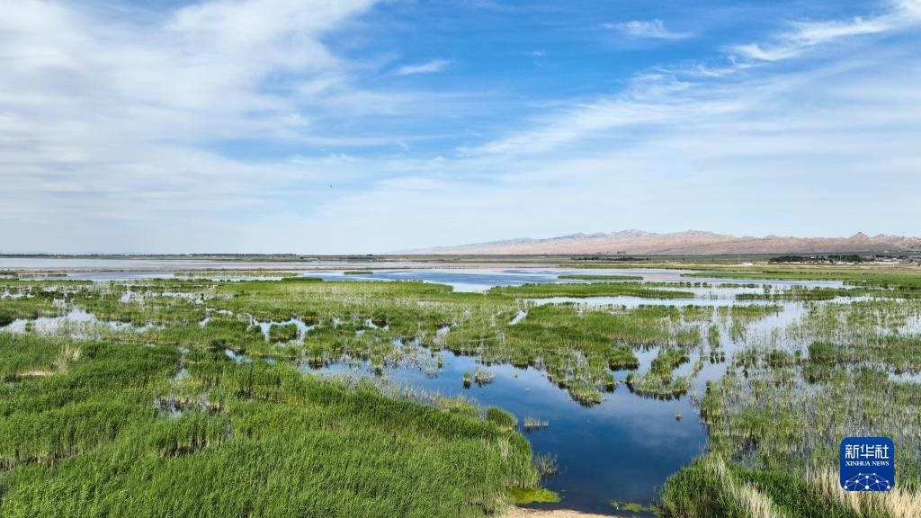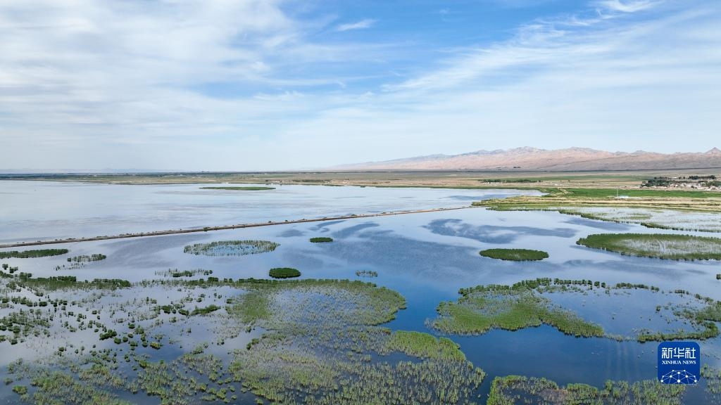 夏日里,位于內(nèi)蒙古巴彥淖爾市烏拉特前旗的烏梁素海波光粼粼,風(fēng)景如畫。