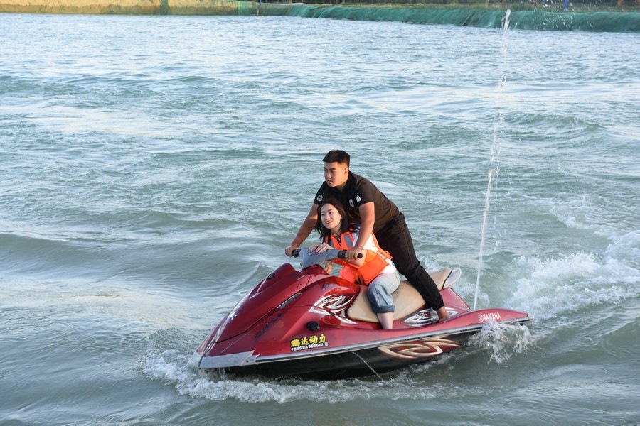 游客乘坐摩托艇感受水上的驚險刺激  記者 張楊攝影