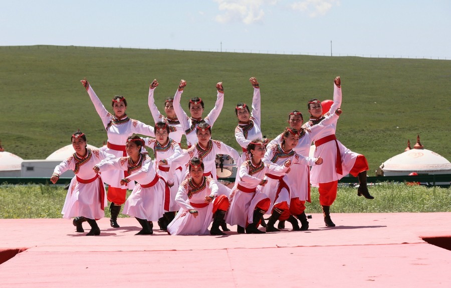 伴著悠揚(yáng)的歌聲,踏著激昂的步伐,在旗幟方隊的引領(lǐng)下,哈達(dá)方隊、民族方隊、烏蘭牧騎方隊、牧馬人方隊、裁判員及運(yùn)動員方隊依次走進(jìn)會場。隨著彩煙燃放,氣球升空,那達(dá)慕在梅林組合的歌曲《歡騰那達(dá)慕》中拉開帷幕。隨后,歌伴舞《石榴花開》等節(jié)目輪番登場,現(xiàn)場觀眾掌聲雷動,讓來自全國各地的游客在紅石崖高山牧場領(lǐng)略了草原的柔情。