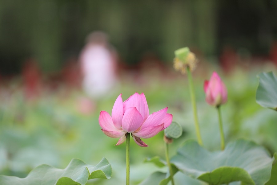 初秋時(shí)節(jié),水光瀲滟間,公園內(nèi)的滿池荷花嬌艷、荷葉青翠,漫步棧道中,仿佛置身于一幅詩(shī)意的畫卷。