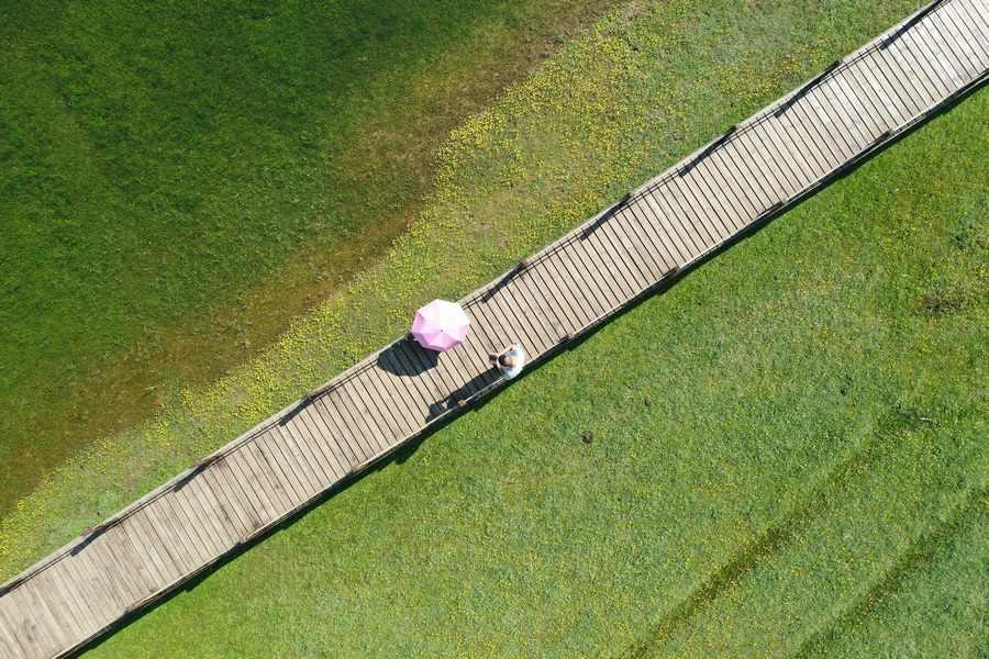 來自湖南省的游客王瑩舉起手機(jī)不停拍攝,她說:“這是我第二次來烏海了,第一次來烏??戳藶鹾:厝チ诉€想來,這不和朋友又來了。遠(yuǎn)處的沙漠與湖水相互交融,搭配著音樂,這種前所未有的體驗(yàn)讓我特別喜歡?!薄斑@是我第一次來烏海,正好趕上了‘沙漠看?!魳窌?,特別有感覺?!鄙轿魇∮慰椭x紅平說。