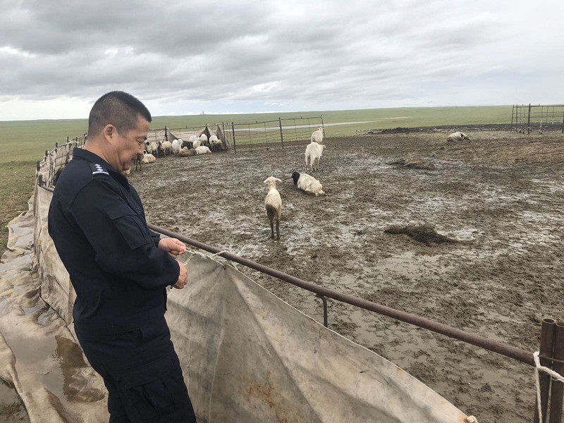 8月18日,巴音烏拉邊境派出所組織民警迅速救援轄區(qū)受災(zāi)羊群,及時(shí)挽回牧民財(cái)產(chǎn)安全。
