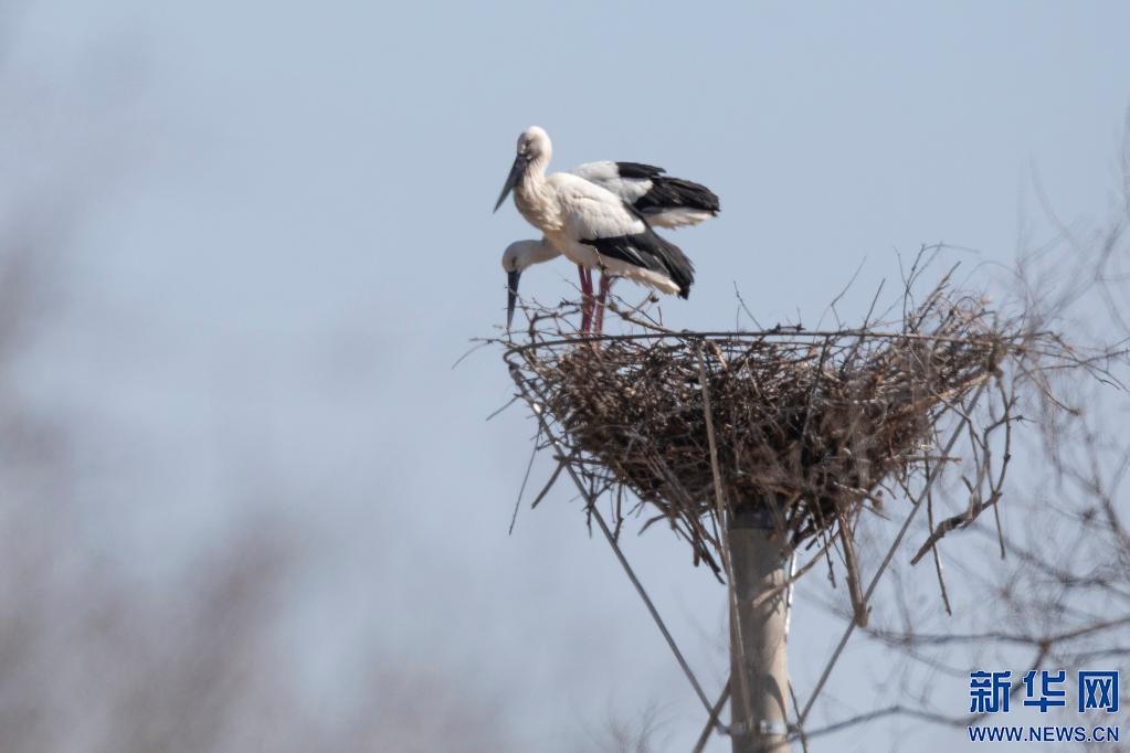 “我們在不同的地點安置了十幾個人工巢,目前我們發(fā)現(xiàn)一對東方白鸛已經在人工巢上筑巢,為繁殖做著準備。這說明人工輔助的手段很重要,接下來會有更多的東方白鸛在這里筑巢繁殖,恢復20多年前的往日景象。”科爾沁國家級自然保護區(qū)管理局副局長于有忠欣喜地說。