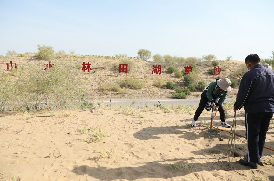 “前人栽樹,后人管護(hù)?!苯衲?0歲的賈文義,是杭錦旗獨(dú)貴塔拉鎮(zhèn)什拉召治沙站站長,也是杭錦旗治沙的“沙三代”。1985年,18歲的賈文義接過父親賈尚付的鐵鍬,擔(dān)起第三代治沙人的使命。賈文義表示,在沙漠中種樹,絕不像網(wǎng)友在平臺(tái)上種一棵樹那樣簡單,“植樹造林不是一次就能成功的,是一個(gè)漫長的過程,需要3至5年甚至10年,才能行成一片森林,這是大自然的規(guī)律?!?br/>