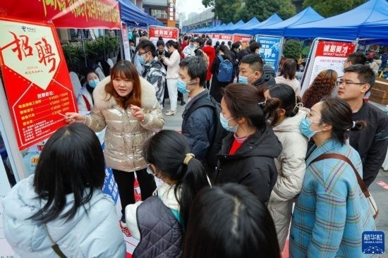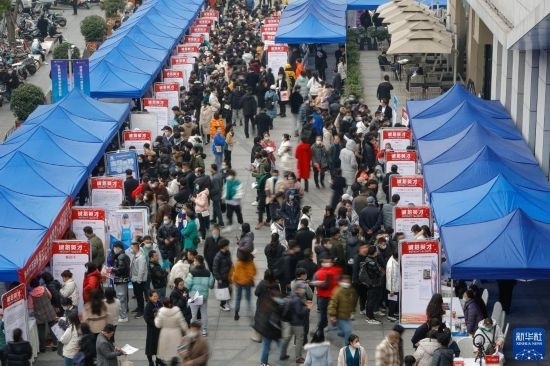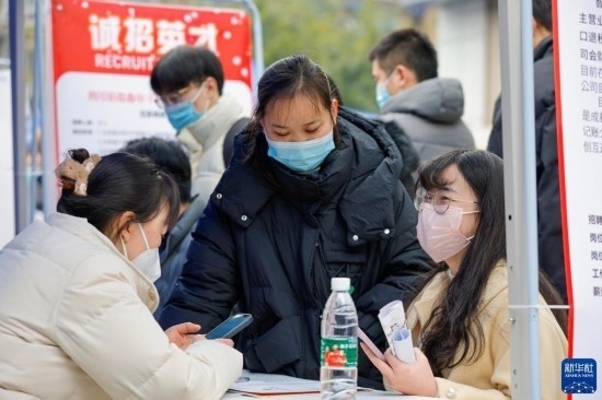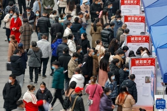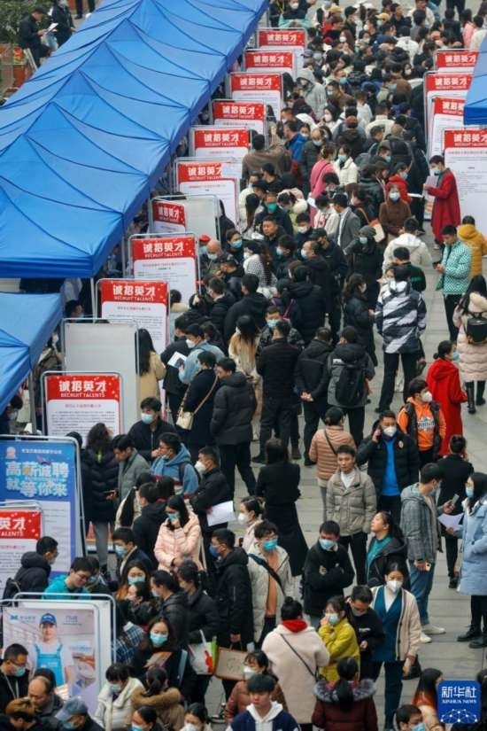 2月17日,人們在中國成都人力資源服務(wù)產(chǎn)業(yè)園查看招聘信息,尋找工作機會。