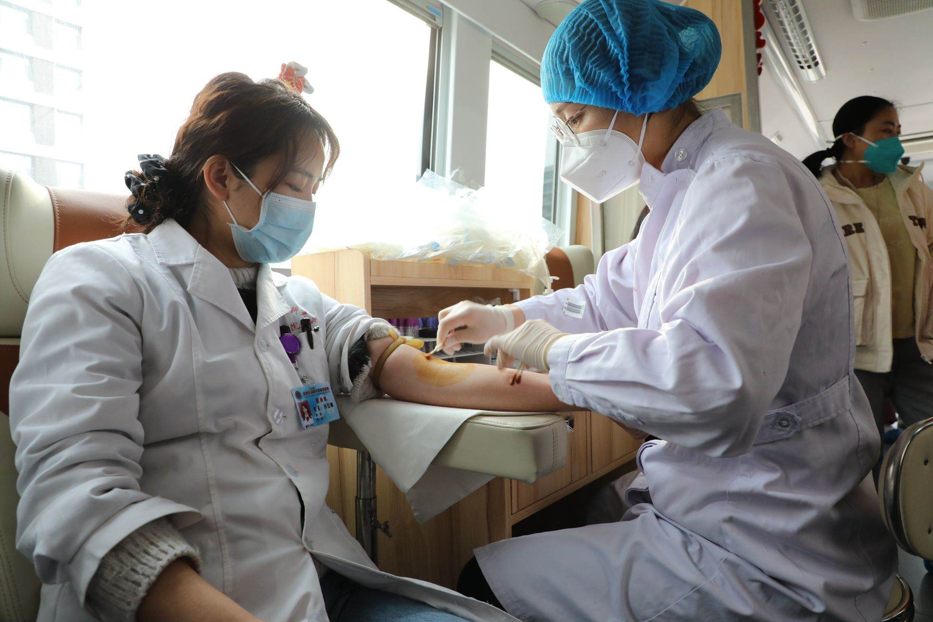 2月17日8時(shí)30分,在內(nèi)蒙古醫(yī)科大學(xué)附屬醫(yī)院門診樓東側(cè),拿到體檢表的獻(xiàn)血者有序排隊(duì)登上獻(xiàn)血車。接受健康征詢、信息登記、血液檢驗(yàn)、血壓測(cè)量……正式采血前的一系列把關(guān)步驟嚴(yán)謹(jǐn)而認(rèn)真。前來(lái)獻(xiàn)血的既有剛下夜班的護(hù)士,也有本該休息特意趕來(lái)的醫(yī)生,還有上班間隙匆匆趕來(lái)的行政人員。