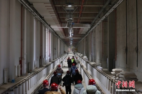 2月20日,北京地鐵12號(hào)線東壩車輛段加緊施工。北京地鐵12號(hào)線正線全長為29.6km,西起西四環(huán)四季青橋南,東至東壩北街,途經(jīng)海淀、西城、東城、朝陽四個(gè)行政區(qū),全線共設(shè)21座車站,其中換乘站15座,全線建成通車后,將與4號(hào)線、5號(hào)線、8號(hào)線等12條線路實(shí)現(xiàn)換乘。當(dāng)前12號(hào)線車輛陸續(xù)進(jìn)場,工程正在加速推進(jìn)。中新社記者 富田 攝
